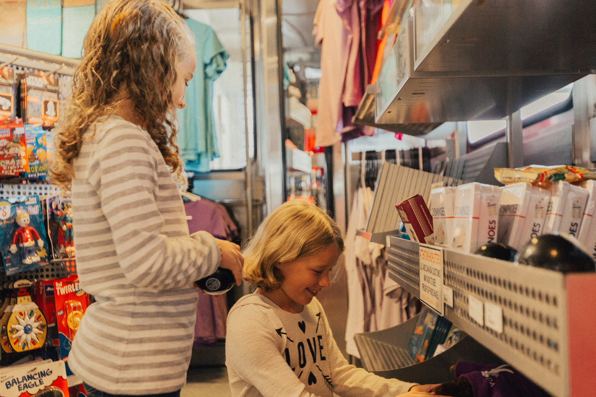 The onboard coffee shop serves a variety of hot and cold food and beverage options throughout the crossing. Items include Ivar's Famous Clam Chowder, soft-serve ice cream, fish and chips, espresso and cappuccino, as well as a wide variety of locally made products including Bedford's award-winning sodas. Sandwiches are made fresh daily by Shirley's Cafe.